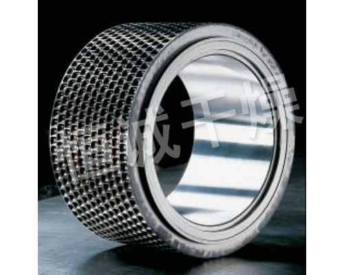 对辊式挤压造粒的工艺原理是:干物料在压力作用下团聚成致密坚硬的大块(饼料),称为挤压过程;饼料再被破碎筛分后成为颗粒料称为造粒过程。挤压的作用一是将颗粒间的空气挤掉,另外是使颗粒间距达到足够近,以产生如范德华力、吸附力、晶桥及内嵌连接等吸引力。挤压造粒的颗粒主要是靠分子之间的作用力形成的颗粒强度。