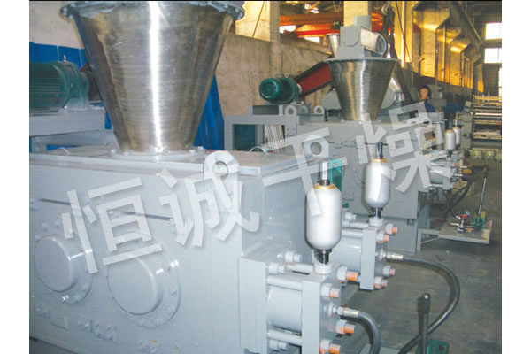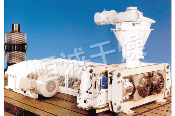 挤压造粒的形式可以有对辊式和轮辗式两种,对辊式挤压是先压成大块,再破碎成颗粒,这样装置的能力大、颗粒强度高、能耗低,对辊挤压在国外使用广泛。轮辗式是在辊表面直接做成有穴槽型的形状,一次挤成成型颗粒。产品强度较低有时需添加粘结剂。适合做有机肥和复合肥等颗粒肥料。